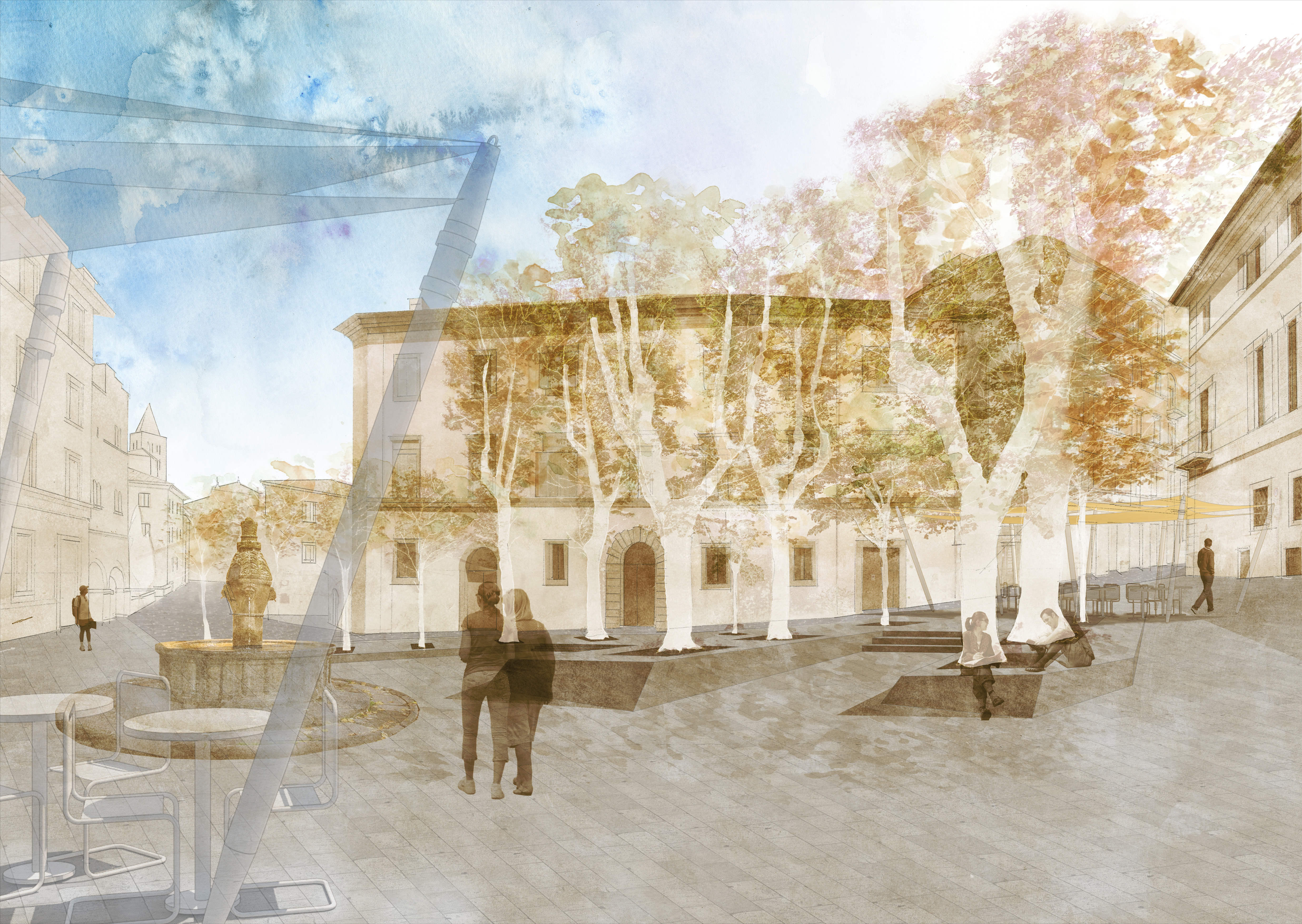 Al centro dell'approccio progettuale vi è la consapevolezza che la natura della città non necessita di interventi particolarmente invasivi dal punto di vista formale. La Bellezza dei luoghi non ha bisogno di un pesante maquillage, ma di pochi, precisi tratti a sottolineare una struttura già compiuta. La proposta di progetto propone quindi di individuare la migliore chiave di lettura per far emergere e potenziare la reale vocazione dei luoghi oggetto del concorso, valorizzando e rendendo armonica la compresenza di istanze legate sia alla tradizione monumentale sia alla volontà di vivere la città in maniera compatibile con le esigenze attuali. Obiettivo principale è quello di promuovere il cambiamento da una prassi di utilizzo casuale, disordinata e spesso penalizzante, ad un approccio ragionato e strutturato, generatore di coerenza nell'utilizzo degli spazi e dei percorsi.I criteri guida nascono da una precisa analisi dello stato dei luoghi partendo dalla memoria della "vetus urbs", declinata attraverso il rispetto delle tradizioni culturali e religiose che rappresentano il centro e l'anima della vita cittadina, sovrapposte alle esigenze attuali. Tali criteri riguardano la gestione dei flussi veicolari e pedonali, la valorizzazione della vocazione dei luoghi, il disegno e la caratterizzazione degli elementi architettonici, dei materiali, dell'arredo urbano e del nuovo sistema dei dehor, la definizione di un efficace sistema informativo e di orientamento e la progettazione di un efficace sistema di illuminazione notturna.